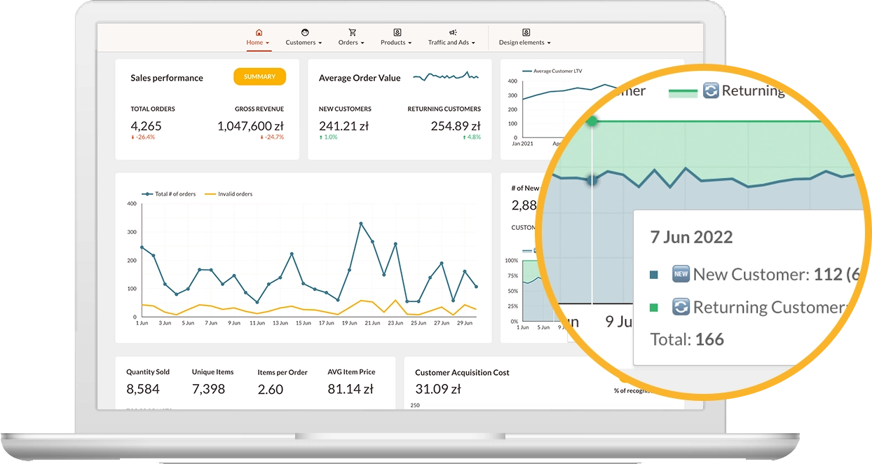 By default we offer predefined dashboards built in Google Data Studio which cover the most important metrics for online stores. Other than that, you can connect to datasets with other tools including PowerBI or Tableau.